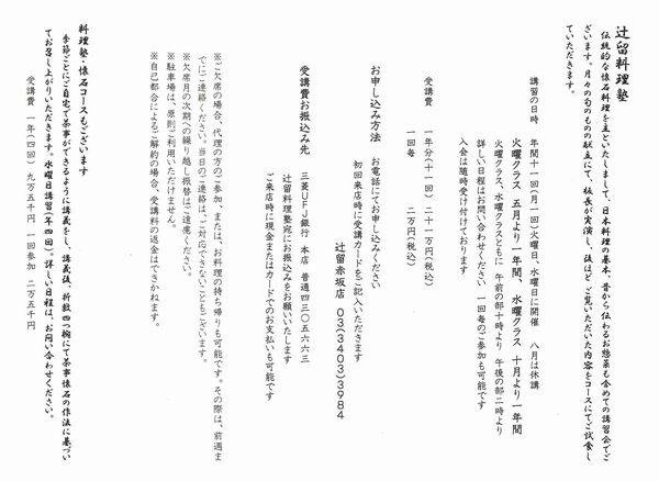 辻留料理塾のご案内